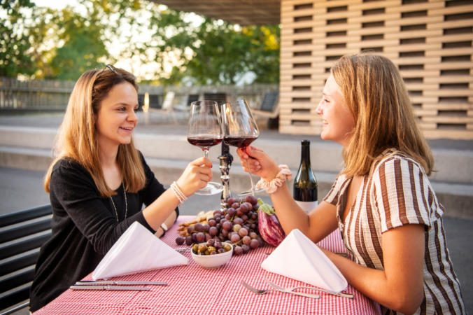 Tischtuch und Kerzenständer Variantikum - Wein und Gläser - Vinothek Josef - div. Delikatessen: l‘Italiano - Menü, Geschirr und Kellner: Theater Casino